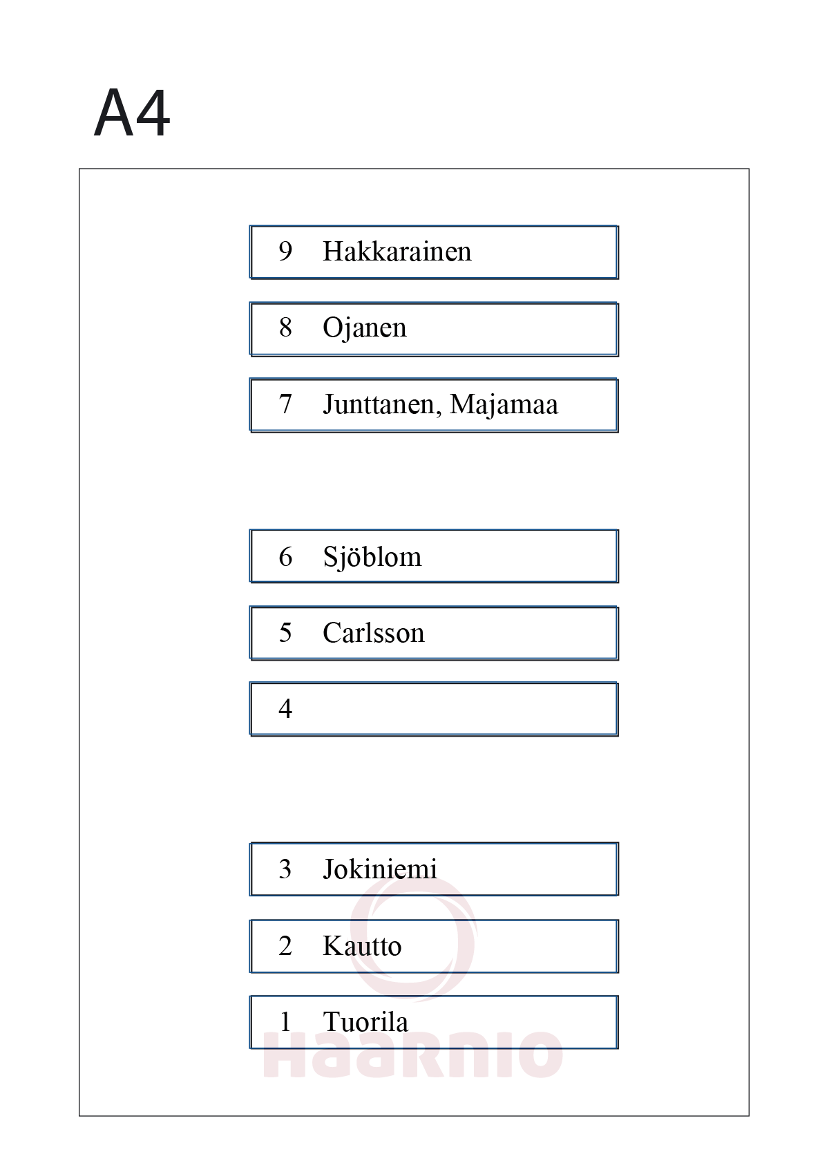 Nimituloste A4 Retrox tauluun